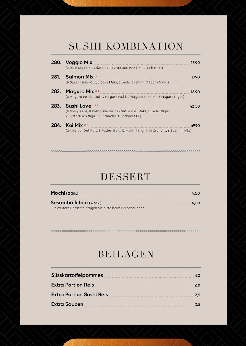Welcome to KOI Asian Food & Sushi Bar - Worms, a culinary haven nestled in Kammererstraße. This gem serves authentic Asian cuisine, with an impressive range of sushi and tantalizing dishes that reflect a blend of tradition and innovation. The menu features delectable Sommerrollen and traditional Vietnamesische Nem—each bite bursting with flavor and freshness. For a heartier meal, try the Wok dishes available in tofu, chicken, beef, or shrimp variations, intricately seasoned with Hoisin sauce alongside seasonal vegetables.